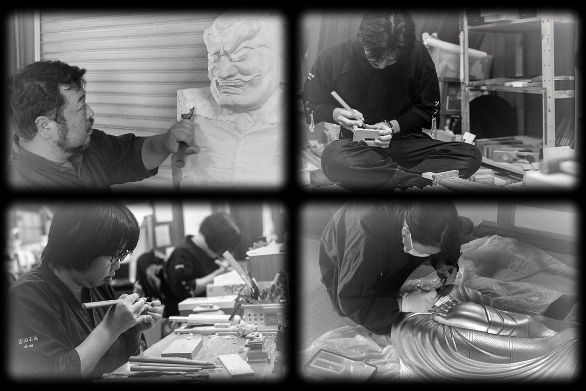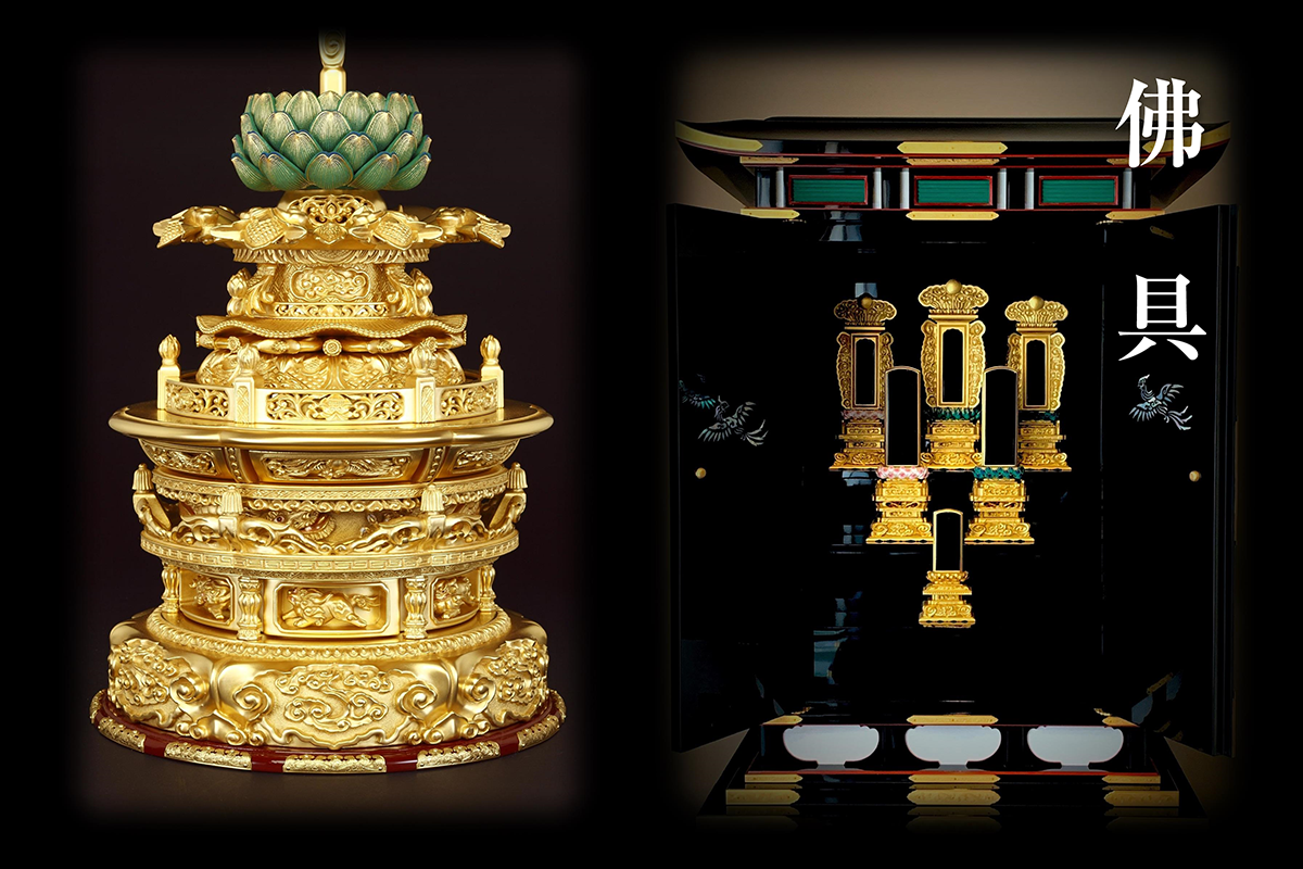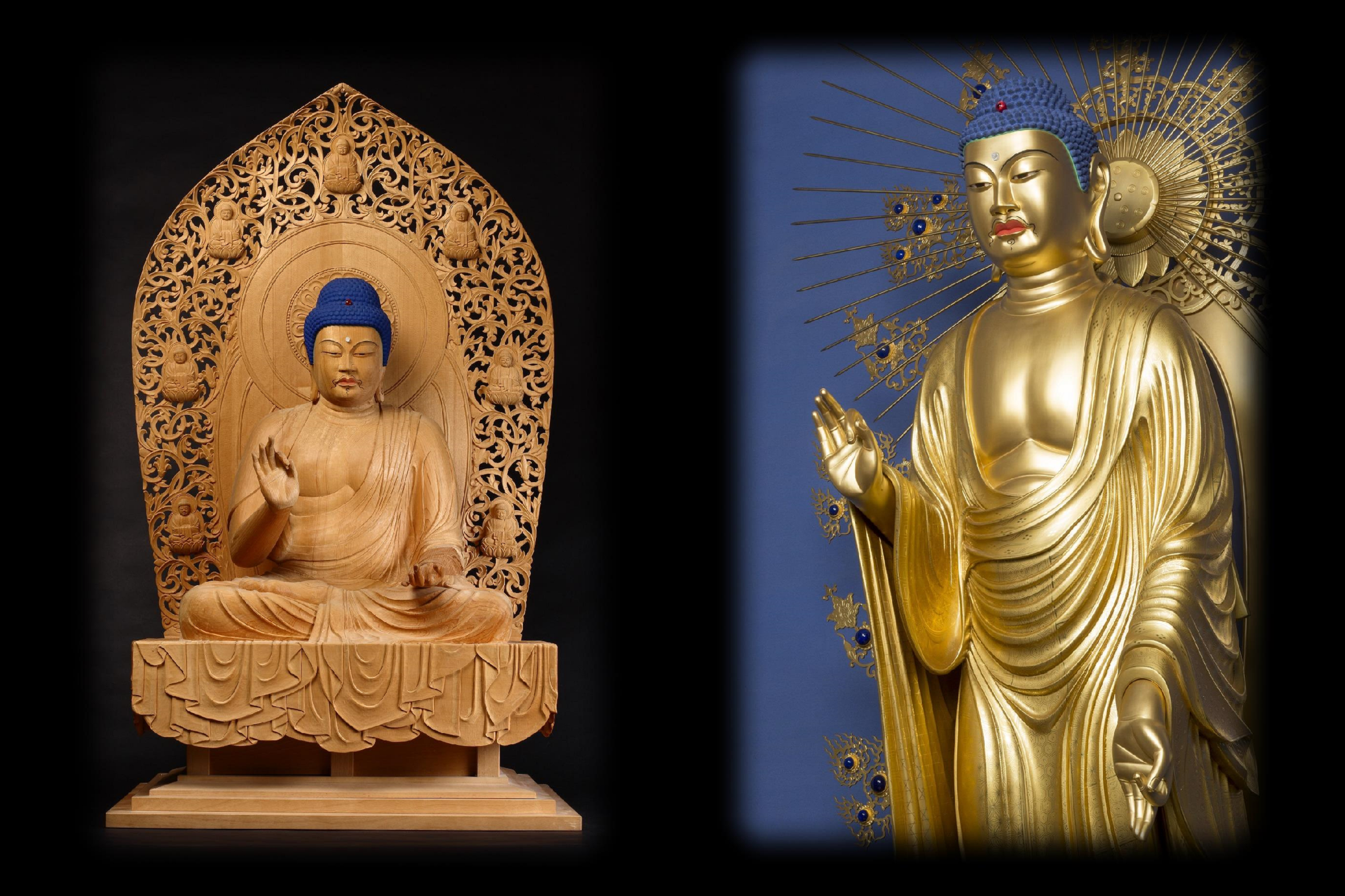 その流れの中でも、寺院や各家で手を合わせて代々大切に引き継がれていく御佛像や御位牌を作るにあたり我々は手彫りにこだわり続け、漆塗りや箔押し、
