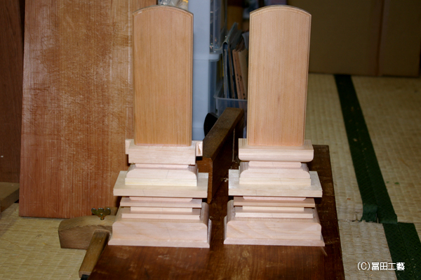 そして御位牌の見せ所でもある彫刻に至るまで基礎ベースを作る工程です。我々は基本的には彫刻細工のしやすい紅松材を使用しますが要望に応じて木曾檜材なども使用します。