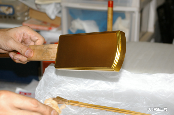 10. 最後は余分な金粉を刷毛で落とし完成。