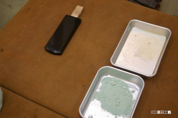 今は手に入らなくなってしまったため、代用品として京都の研磨砥石メーカーと漆精製メーカーが共同開発している蝋色磨粉という研磨剤を使用しております。